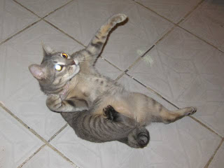 For a few days, Daddy filled the Taddy Boy's food bowl with lots of cat's goodies. Mommy questioned the wisdom of doing that. Daddy's theory was that if Tabby Boy had too much to eat, he would become tired of eating. True to his theory, after a while, Tabby Boy stopped finishing all his food. Today, this fat cat has lost some weights and eats according to his own needs.